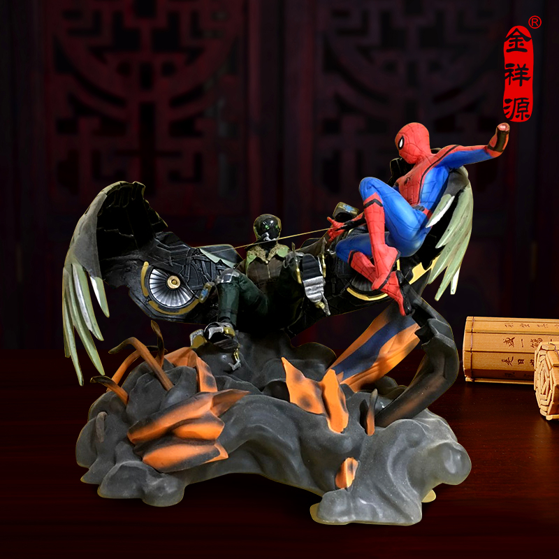 《蜘蛛俠》發售的樹脂手辦模型,可以看出作品很好地表現了蜘蛛俠矯健的身姿,也真實地還原了原作人物標志性的英雄氣質和隱忍剛強的性格 :深藏紅藍服裝下的眼睛中流露出堅毅,使人物面對巨大挑戰時冷靜果敢的狀態充分體現。作品人物造型比例的把握準確,身體各部分比例勻稱,姿態自然,衣紋、服飾等精煉到位,質感細膩光滑,這種對于動漫人物準確、完美的呈現,正是出于滿足高端動漫迷的要求 :刻畫越精準,做工越精美,越能滿足他們的收藏欲望。
